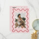 Whimsical and quirky wedding thank you card featuring a hand drawn wavy line around your photo. Pink.
