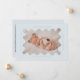 Whimsical and sweet birth announcement card featuring hand drawn photo frame of squiggly wavy line in blue.