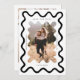 Whimsical and quirky save the date card featuring a hand drawn squiggly wavy frame around your photo. The colour is in black and white.