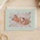Whimsical and sweet birth announcement card featuring hand drawn photo frame of squiggly wavy line in green.