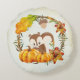 Squirrel and Pumpkins Rustic Wreath Round Cushion