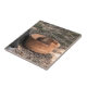 A ceramic tile featuring a photo of a squirrel in a ceramic basket.