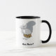 White Coffee Mug with black handle and lip trim in black. Cartoon Squirrel Image in leopard print swim trunks. Saying: Got Nuts?