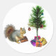 Squirrel Christmas Tree Classic Round Sticker