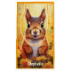 Picture of a cute squirrel surrounded by yellow flowers - image generated with the help of AI. You can easily personalise this cute gift bag with your own name.