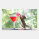 Photo of a cute squirrel drinking a cocktail from a big martini glass with two straws. The squirrel is standing on its toes and drinking from an umbrella straw. No Photoshop was used for this picture and it's only water and food colouring in the glass!