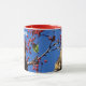 A closeup shot of a Red Fox Tail Squirrel eating red berries with blue sky that's bright and colourful. That's bright and colourful that's on a MUG.