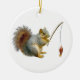 A squirrel with a gold fish on his tiny fishing pole. Cute ornament for a squirrel lover or fisherman.