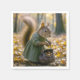 A charming squirrel in a delightful green dress, expertly gathering nuts in her handbag amidst the vibrant autumn woods