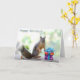 A squirrel poses between two brightly-wrapped presents in this original photo. "Happy Birthday!" is written in script above the squirrel.