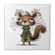 Squirrel in a Green Trenchcoat Ceramic Tile