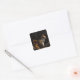 This sticker features a moment out of time. A beautiful red squirrel is sitting on a branch in a patch of sunlight in front of the dark textured bark of a wild cherry tree.