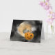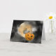 A squirrel on la Halloween jack-o-lantern in front of a misty full moon. Spooky Halloween card, add your own words to customise.