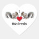 This sticker features two grey squirrels with a red heart between them.