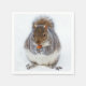 Adorable portrait photograph of a grey squirrel caught nibbling a nut in the snow.