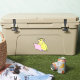 The stick looks amazing. Unfortunately, it would not stick on our suitcase as it was textured. When we found a non-textured (smooth) suitcase, the sticker stuck and looks great. The printing looked awesome.