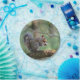 This paper plate features a squirrel eating his lunch in a pine tree in Hatfield Hollow State Park, Killingworth, Connecticut.