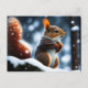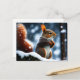 Are you ready for some winter wonderland cuteness? Look no further than this stunning postcard featuring a charming squirrel, nestled up on a log and admiring the snowy landscape of the forest. With his fluffy tail and adorably curious expression, this little guy is sure to warm even the coldest of winter hearts. The tranquil scenery in the background creates a serene and peaceful vibe, making it the perfect card to send to friends and family during the holiday season. Whether you're a fan of nature or just love cute critters, this postcard is a must-have for your collection. So, go ahead and spread some wintertime joy with this delightful squirrel postcard - it's a winter winner!
