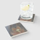 The coasters are gorgeous, a quality feel and heavy weight. They look like a precious archeological find. A rustic stone juxtaposed with a modern floral black and white print. I like the way the print goes slightly imperfect on the cut stone edges giving them a kind-of natural beauty.