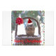 A squirrel wearing a Santa hat is sitting on a basket decorated with a box while snow falls all around her. Christmas lights surround the edge of the photo and the words "Merry Christmas" are printed in red lettering on the bottom. The photo is surrounded by stamped snowflake designs.