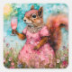 Squirrel with a Pink Dress and a Drink Square Sticker