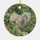 This cute pendant style ornament features a photograph of a cute fluffy grey squirrel clutching an acorn and sitting in a tree in the forest. There is black customisable text on the back for you to personalise this ornament.