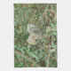 This awesome kitchen towel features a photograph of a cute fluffy grey squirrel clutching an acorn and sitting in a tree in the forest.