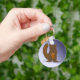 A cute little reddish brown squirrel holding an acorn in his paws. A shaded blue background accent him.