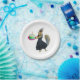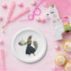 A squirrel wearing a black dress carrying a birthday cake. Add your own words to make your own fun birthday plates.