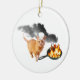 A cat wearing a chefs hat burns food in an old cast iron frying pan on this funny cooking ornament.