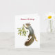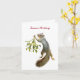 A sweet little squirrel holds out a sprig of mistletoe on this "Season's Greetings card.