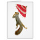 A stylish squirrel strolls along with a red and white parasol on this fun card.
