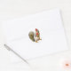 A little squirrel wearing a party hat holds a gift wrapped gift in red paper on these cute holiday stickers.