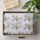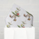 Squirrels hold a tree with yellow birds and a red pomegranate on this holiday tissue paper.