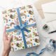 Squirrels wearing party hats and coloured balls adorn this fun wrapping paper.