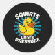 Squirts Under Pressure Funny Word Play Witty Adult Classic Round Sticker