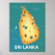 Sri Lanka map travel poster in a beautiful vintage or retro style.