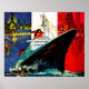 ss France with Eiffel Tower and Statue of Liberty Poster