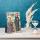 + In the Confessions, SS. Monica and Augustine stood at a window overlooking an interior central garden of a typical peristyle Roman house. In this splendid image, they are depicted deep in conversation on a porch overlooking the sea. Seated on a marble bench, St. Monica is dressed in a violet mantle with an emerald green lining over a reddish-pink robe. She wears a white veil and her head is surrounded by a halo in emerald green with yellow-green rays. She gestures animatedly with both hands raised in the rhetorical gesture of supplication or solemn entreaty towards her son. St. Augustine is anachronistically tonsured and dressed in the black habit of his—the Augustinian—order. A priest’s black galero--a low-crowned, wide-brimmed ecclesiastical hat--lays on the bench behind him. He would not live the monastic life nor become a priest until after his return to Africa (in c. 388 and 391, respectively). Focused on spiritual matters, St. Augustine’s eyes are lifted towards heaven. His right hand rests on the balustrade and his left is raised in the rhetorical gesture calling for silence. He is bearded and his head is surrounded by a halo in dark reddish-pink with rays in a lighter shade of that colour. Heavenly beams of soft yellow light shine down on the figures of the two saints through grey-violet clouds in an aqua blue beamed sky. Taken as a whole, the scene telescopes the saints’ mother-son relationship: St. Monica’s entreaties to Augustine to mend his ways (the past); the intimate conversation on spirituality at Ostia (the present), and St. Augustine’s commitment to the religious life (the future). + Five days later, St. Monica--her heart’s desire achieved, her earthly work finished--contracted a fever. She died at Ostia following a nine-day illness. + Feasts: August 27 (St. Monica) and August 28 (St. Augustine) + Image Credit (SAU 047): Antique devotional print in chromolithography of SS. Monica and Augustine entitled Loquebantur soli valde dulciter [‘They spoke alone together sweetly’], originally published by the Socièté de St. Augustin, Bruges, Belgium, late 19th century, from the designer’s private collection of religious ephemera.