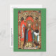 St. Alphonsus Maria de Liguori (1696–1787) was an Italian nobleman, a lawyer turned priest, prolific writer, founder of the Redemptorists, Bishop, and Doctor of the Church. Here, in a chapel setting against a red brick background, he stands wearing his Bishop’s robes—mitre and cope—and carrying his crosier or pastoral staff. His right hand is raised in blessing. In art, when portrayed at an angle to the viewer as in this image, he has a noticeably humped back and a chin tucked into his chest. In May 1768, he had been struck with a terrible attack of rheumatic fever that lasted over a year and left him permanently crippled until his death some twenty years later. For this reason, he is patron saint of rheumatoid arthritics and the aged ill. + Feast: August 1 + Image Credit (SAU 039): Antique image of St. Alphonsus Liguori from a late 19th-century devotional print in chromolithography, originally published by Socièté de St. Augustin, Bruges, Belgium, from the designer’s private collection of religious ephemera.