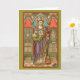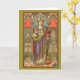 St. Alphonsus Maria de Liguori (1696–1787) was an Italian nobleman, a lawyer turned priest, prolific writer, founder of the Redemptorists, Bishop, and Doctor of the Church. Here, he stands unaided wearing his Bishop’s regalia—gold and white mitre, violet cope with chartreuse lining, and golden pectoral cross. In his hands, he holds a quill pen and an open book. In reality, St. Alphonsus spent much of his later life confined to a wheelchair following a devastating bout of rheumatic fever during his episcopate. Seen frontally in this image, his infirmity is indicated only by his chin being slightly tucked against his chest. + The emphasis here is on St. Alphonsus’s prolific writings. In addition to quill pen and handheld book, a stack of volumes lay at his feet. St. Alphonsus wrote well over one hundred works on theology and spirituality, numerous letters, poems, hymns, and devotionals. In 1871, Pope Pius IX declared St. Alphonsus a Doctor of the Church recommending him to theologians as a master of moral theology. + Feast: August 1 + Image Credit (VVP 005): Antique image of St. Alphonsus Liguori from a late 19th-century devotional print in chromolithography, originally published by K. van de Vyvere-Petyt, Bruges, Belgium, from the designer’s private collection of religious ephemera.
