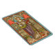 St. Alphonsus Maria de Liguori (1696–1787) was an Italian nobleman, a lawyer turned priest, prolific writer, founder of the Redemptorists, Bishop, and Doctor of the Church. Here, he stands unaided wearing his Bishop’s regalia—gold and white mitre, violet cope with chartreuse lining, and golden pectoral cross. In his hands, he holds a quill pen and an open book. In reality, St. Alphonsus spent much of his later life confined to a wheelchair following a devastating bout of rheumatic fever during his episcopate. Seen frontally in this image, his infirmity is indicated only by his chin being slightly tucked against his chest. + The emphasis here is on St. Alphonsus’s prolific writings. In addition to quill pen and handheld book, a stack of volumes lay at his feet. St. Alphonsus wrote well over one hundred works on theology and spirituality, numerous letters, poems, hymns, and devotionals. In 1871, Pope Pius IX declared St. Alphonsus a Doctor of the Church recommending him to theologians as a master of moral theology. + Feast: August 1 + Image Credit (VVP 005): Antique image of St. Alphonsus Liguori from a late 19th-century devotional print in chromolithography, originally published by K. van de Vyvere-Petyt, Bruges, Belgium, from the designer’s private collection of religious ephemera.