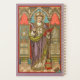 St. Alphonsus Maria de Liguori (1696–1787) was an Italian nobleman, a lawyer turned priest, prolific writer, founder of the Redemptorists, Bishop, and Doctor of the Church. Here, he stands unaided wearing his Bishop’s regalia—gold and white mitre, violet cope with chartreuse lining, and golden pectoral cross. In his hands, he holds a quill pen and an open book. In reality, St. Alphonsus spent much of his later life confined to a wheelchair following a devastating bout of rheumatic fever during his episcopate. Seen frontally in this image, his infirmity is indicated only by his chin being slightly tucked against his chest. + The emphasis here is on St. Alphonsus’s prolific writings. In addition to quill pen and handheld book, a stack of volumes lay at his feet. St. Alphonsus wrote well over one hundred works on theology and spirituality, numerous letters, poems, hymns, and devotionals. In 1871, Pope Pius IX declared St. Alphonsus a Doctor of the Church recommending him to theologians as a master of moral theology. + Feast: August 1 + Image Credit (VVP 005): Antique image of St. Alphonsus Liguori from a late 19th-century devotional print in chromolithography, originally published by K. van de Vyvere-Petyt, Bruges, Belgium, from the designer’s private collection of religious ephemera.