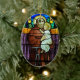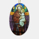 A beautiful ornament or keepsake containing a depiction of St Anthony from a stained glass window.