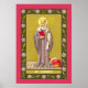 St. Audrey (or Etheldreda; c. 636-679) is one of the most popular mediaeval English saints in Britain. She was born an East Anglian princess, became Queen of Northumbria, and died a nun. Widowed once and married twice for reasons of State, nevertheless, she remained a virgin. When her second husband began to press for his marital rights, she sought the counsel of St. Wilfred, Archbishop of York, who advised her to become a nun and abetted her vocation. She made her vows at Coldingham in 672. In the ensuing years, she founded a great double monastery for both men and women at Ely, Cambridgeshire, over which she presided as abbess. In little more than four centuries, in 1109, the site of her abbey at Ely would be constituted a Cathedral. She died of a painful throat ailment in 679. + Here, St. Audrey (Etheldreda) is depicted as abbess, having laid aside her royal robe with its ermine lining, sceptre, and secular crown which appear on the floor at her feet. She now wears a rayed crown tipped with stylised flowers. In her right hand, she holds a book; in her left, her abbess’s crosier with its sudarium or ‘sweat cloth’ used to prevent discoloration of the staff’s metal shaft by a sweaty palm. Ordinarily, she holds a model of Ely Cathedral and a budding rod or lily of purity. + On a side note… Our word ‘tawdry’ which means ‘gaudy and cheap in nature or appearance’ is a corruption of the name ‘St. Audrey’. Tawdries or cheap ribbons and ladies’ neckties in silk or lace were once sold at the annual fair held in her honour at Ely. St. Audrey’s connection with neckwear arose from the unsightly neck tumour from which she died. She viewed the ailment as just punishment for her love of fine jewellery in her youth. + Feast: June 23 + Image Credit (P 003): Antique image of S[t].Etheldreda.A[bbess].V[irgin]. from a late 19th-century devotional print in chromoxylography, originally published by Friedrich Pustet, Regensburg, New York, and Cincinnati. From the designer’s private collection of religious ephemera.
