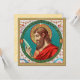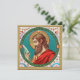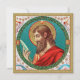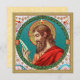 This roundel features a pensive St. Bartholomew (also known as Nathaniel; 1st century) contemplating the sharpness of a knife. Brought to Jesus by St. Philip, the Apostle with whom he is most often associated, St. Bartholomew preached the Gospel after Christ’s Ascension in Asia Minor, Ethiopia, India, and Armenia. Traditionally, he met a most gruesome martyrdom being flayed or skinned alive. For this reason, his major attributes are a tanner’s or skinning knife... and (not shown here) a human skin! Fittingly, he is patron saint of butchers and leather workers—namely tanners, bookbinders, and shoemakers. + Feast: August 24 + Image Credit (JMAS 03): Antique image of St. Bartholomew the Apostle from a late 19th-century devotional print in chromolithography with gilt accents originally published by Josef Müller, Art Publisher, Munich, Germany, from the designer’s private collection of religious ephemera. The image is one of twelve in the publisher’s Apostle Series (No. 12155).