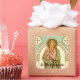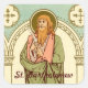 Image Source (RLS 03): Antique image in chromolithography with gilt accents of St. Bartholomew the Apostle from Red Letter Saints: Being a Series of Biographies of those Saints for which Proper Collects, Epistles and Gospels are appointed in the Book of Common Prayer. Printed by E. Kaufmann, Lahr, Baden, Germany, for the Society for Promoting Christian Knowledge / S.P.C.K. (London, 1911), p. 55. From the designer’s private library. + Feast: August 24 + Text is in dark red-brown (#460000) which matches the figure's outline.
