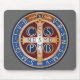 The other side of the medal is where the real exorcistic force reveals itself. In the centre is the Cross. Benedict loved the Cross and used it to drive away demons. The vertical beam of the Cross has five letters: C.S.S.M.L., meaning Crux Sacra Sit Mihi Lux (May the holy Cross be for me a light). The horizontal beam of the Cross also has five letters: N.D.S.M.D., meaning Non Draco Sit Mihi Dux (Let not the dragon be my guide). The four large letters at the angles of the Cross: C S P B stand for Crux Sancti Patris Benedicti (The Cross of the Holy Father Benedict). Encircling the Cross in a circle around the right margin are these letters: V.R.S.N.S.M.V., meaning Vade retro Satana; nunquam suade mihi vana (Begone Satan! Suggest not to me thy vain things). Around the left margin of the circle are these letters: S.M.Q.L.I.V.B., meaning Sunt mala quae libas; ipse venena bibas (The drink you offer is evil; drink that poison yourself). At the top of the circle is the word PAX (Peace). Use No special way of carrying or applying the Medal is prescribed. It may be worn around the neck, attached to the scapular or the Rosary or simply carried in one's pocket. Often it is placed in the fields, the foundations of buildings or attached to automobiles to call down God's blessing and the protection of St. Benedict. No particular prayer is prescribed, as the devout wearing itself is a continual silent prayer.