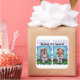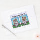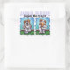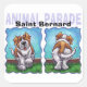 Animal Parade Cute St. Bernard Dog Square Sticker created by Imagine That! Design features our cute tan and white dog character standing in a grassy yard with a red brick fence, a textured blue sky and a playful wavy purple border painted by our talented children's book artist, Traci Van Wagoner. The fun pup stands in play position with one paw raised. This fun pet art is perfect for St. Bernard dog lovers and humourous animal art lovers of all ages. On many of our whimsical St. Bernard doggy products you'll find this cute puppy coming and going with the playful Saint Bernard dog's head on one side and the funny dog's tail on the other. Join the Animal Parade and bring a smile to the face of someone you love with a gift of our cute St. Bernard dog. Woof!