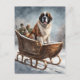 St Bernard Winter Sleigh Scene Postcard